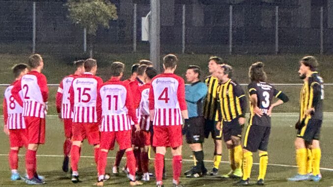 Anfangs tat sich die Endstation gegen sehr routinierte und ballsichere Gegner ungemein schwer. Die erste Viertelstunde war von etlichen Fehlpässen und daraus resultierend kaum Ballbesitzphasen geprägt. Wenig überraschend musste man nach einem Eckball das 0:1 hinnehmen (15‘). Die Ratten waren weiterhin sichtlich überfordert, nur 4 Minuten später entwischte der gegnerische Stürmer unserer Dreierkette, umkurvte Kastrati und schob eiskalt ein – 0:2 (19‘)!